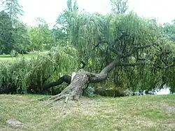 One of the attractions of the park is a historic weeping willow, with its trunk nearly on the surface of the Zgłowiączka river. In November 2017, city authorities decided to cut down the tree. The decision was met with great outrage from local residents, who felt sentimental about the old tree, where, among others, newly-weds would take photos. The residents organized an event on their Facebook profile "Włocławek the way we remember it" (pol. Włocławek, jaki pamietamy"), aimed at discouraging the authorities from cutting down the tree. The local station CW24, portal "DDWłocławek" and TVP3 Bydgoszcz reported on the case. Eventually, the decision to cut down the tree was abandoned, instead it was decided to take greater care of the willow.[4]