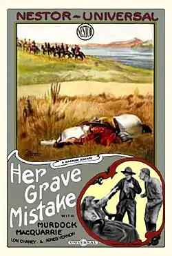 Her Grave Mistake is a 1914 American silent Western film featuring Lon Chaney and Murdock MacQuarrie. Very little is known about who wrote or directed this film. The film is now considered to be lost.[1]