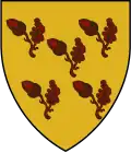 Gules, three facing stags' heads caboched within an orle, all or.[6] | A differenced version of an unrelated Dunster family, on a mistaken attribution by the College of Heralds. |