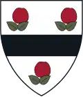 Argent, a chevron between three leverets courant, all sable.[10] | Canting arms—a "leveret" is a young hare—found on the tombs of many of the family: perhaps inherited, perhaps granted by Charles II for service in King Philip's War. |