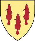 Or, three chabots haurient, with dorsaI fins sinister gules.[4] | Canting arms, used by the Cabot family, assumed from the French Chabot family. |