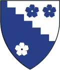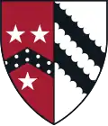 Per bend dancetty argent and azure, three pierced cinquefoils counter-charged, two in chief and one in base, and a chief of Harvard | Assumed arms of Cheever family, for Ezekiel Cheever, "patron saint" of secondary education in New England | ![]() |