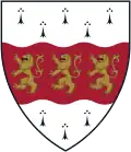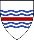 Argent, a fess gules between two bars gemel wavy.[8] | The arms come from a 16th-century adopted arms by the Devonshire Eliots, from whom the Massachusetts Eliot family descended. |