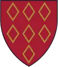 Gules, seven mascles conjoined, three, three, and one, or.[14] | Probably assumed arms, but found on a silver cup belonging to Edmund Quincy, a second generation settler. |