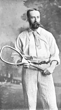 He failed to defend his British Covered Court title in 1888 losing to Ernest Meers in five sets.[15] In 1890 he won the Burton-on-Trent Open tournament against George Lowe.[16] In 1891 he entered the London Covered Championships, but exited in the quarter finals to George Hillyard. He then played at the Queens Challenge Cup at Queens Club but lost to Harold Mahony in the quarter finals.[17] He played his final tournament in 1900 at the Wimbledon Championships losing in the second round to Henry Gillibrand E. Evered.[18] In 1898 he published the book Lawn Tennis Recollections,[19] and he contributed parts to J. M. Heathcotes book Tennis; Lawn Tennis, Rackets; Fives.[20] He also was Honorary Secretary of the Lawn Tennis Association.[21]