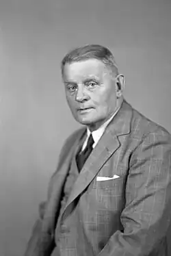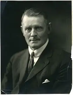 The logical choice was UFA President Henry Wise Wood.[11] However, Wood had little taste for the minutiae of government, preferring to remain at the head of what he saw as a broader political movement (saying he would "sooner be President of the UFA than the USA"),[11] and saw party lawyer Brownlee as the best choice.[11] Brownlee, who, like Wood, had not contested the election, said he felt that the Premier must be a farmer for the aspirations of the UFA's base to be fulfilled.[12] George Hoadley, one of the two UFA members with previous legislative experience (Hoadley had been a sitting Conservative MLA prior to the election; UFA MLA Alex Moore had been elected in a by-election a few months before the general election), was considered, but since his previous experience had been as a Conservative—one of the old line parties so disdained by the UFA — he was deemed unacceptable.[13] There was even some speculation that incumbent Liberal Premier Charles Stewart, who had become a member of the UFA before it entered politics directly, would stay on as Premier, but he immediately announced that he would serve only until the UFA selected a leader.[14] A meeting of the UFA caucus in Calgary selected Greenfield, and he took office as Premier on August 13, 1921.[1]