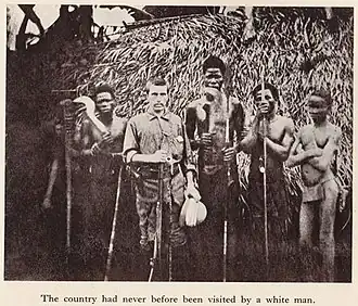 When Ward was in the Congo, cannibalism was still widespread in some regions, and it is frequently mentioned in his works, including in the title of his first book, Five Years with the Congo Cannibals.[5] He reported that once, while he was camping, human flesh was being cooked all around his tent, and that he had seen it being roasted also on other occasions.[6][7] Like other observers, he states that both killed or captured enemies as well as purchased slaves were consumed.[8][9] More than once, Ward saw how slaves intended for consumption were being transported along or exposed on markets where they were slaughtered, in some cases, right after sale.[10][11] He also saw captives being prepared for consumption and, another time, how the flesh of a freshly butchered victim was distributed.[12][13][14]