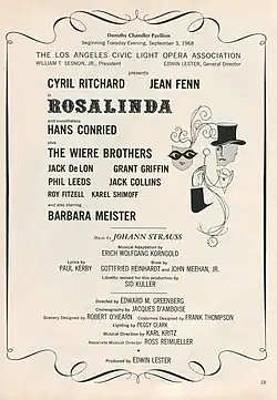 The Wiere Brothers appeared as Frish, Frosh, and Frush in Rosalinda, Los Angeles Civic Light Opera, 1968-69.