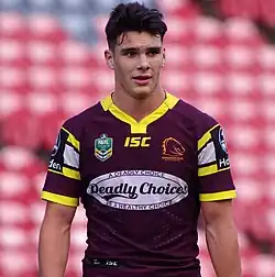 Farnworth made his NRL debut in Round 16 of the 2019 season for Brisbane against the Cronulla-Sutherland Sharks.[6] Farnworth finished with two NRL games played while he played for Broncos feeder club, Norths Devils ending the season as the team's top scorer and third overall in the Intrust Super Cup competition scoring 204 points (20 tries, 62 goals).[7]
