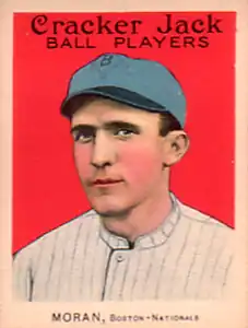 In 1914, Moran was a member of the Braves team that went from last place to first place in two months, becoming the first team to win a pennant after being in last place on the Fourth of July.[2] The team then went on to defeat Connie Mack's heavily favored Philadelphia Athletics in the 1914 World Series.