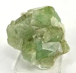 Herderite is a phosphate mineral belonging to the apatite, phosphate group, with formula CaBe(PO4)(F,OH). It forms monoclinic crystals, often twinned and variable in colour from colourless through yellow to green. It forms a series with the more common hydroxylherderite, which has more hydroxyl ion than fluoride.[2]