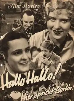 Here's Berlin or Hello Berlin, Paris Calling (French: Allo Berlin? Ici Paris!, German: Hallo hallo! Hier spricht Berlin!) is a 1932 French-German romantic comedy film directed by Julien Duvivier and starring Josette Day, Germaine Aussey and Wolfgang Klein.[1] It was shot at the Johannisthal Studios in Berlin. The film's sets were designed by the art director Erich Czerwonski.