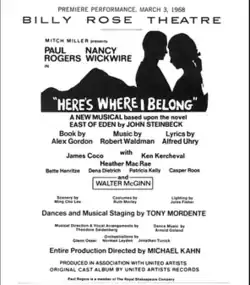 - ^ a b Barnes, Clive (March 4, 1968). "The Theater: 'Here's Where I Belong'". The New York Times. p. 32.