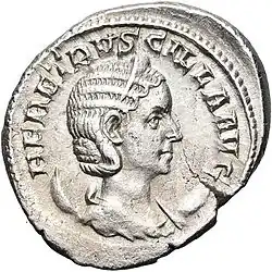 - Herennia Cupressenia Etruscilla, wife of the emperor Decius, and Roman empress from AD 249 to 251. She is not mentioned by the historians, but is known from coins and inscriptions bearing her name and likeness.[56][57][58]