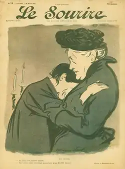 Le Sourire cover designed by Hermann-Paul. La veuve : - Eh bien, ma pauvre enfant... : - Ah ! chère amie, il n'était assuré que pour 20.000 francs !