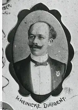 With the advent of the Great War, Heinicke was the object of a great deal of abuse because of his German heritage. He resigned from the Conservatorium in April 1916.[1] The South Australian Orchestra, headed by Professor E. Harold Davies, with bassoonist W. H. Foote, A.R.C.M.[4] as conductor 1921–1931, took over the assets of the Conservatorium Orchestra. Heinicke continued teaching privately until 1933,[2] and ran a piano retail business for a few years from 1925.