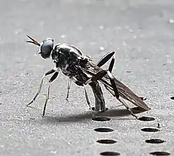 Hermetia illucens, the black soldier fly, is a common and widespread fly of the family Stratiomyidae. Since the late 20th century, H. illucens has increasingly been gaining attention because of its usefulness for recycling organic waste and generating animal feed.[9]