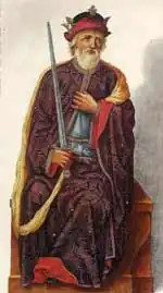 Philip II of Spain would order to him of pictures of the book Libro de Retratos de Reyes..., signboards and real standards of the kings of Oviedo, Leon and Castile, possibly his last work and unique remaining testimony of the decoration of the hall, destroyed in 1860 by derrumbre of his ceiling. Conserved in the Museum of the Prado, he consists of 77 folios in paper verjurado with pictures of the kings of Oviedo, Leon and Castile, shields of arms, signboards and a genealogical tree. Dead Hernando de Ávila in Madrid in buried March 1595 and in the parish of San Sebastián, its widow received in April 1596 five hundred duchies by this book “illuminated of colors” and other, lost, of only drawings of the same subject.