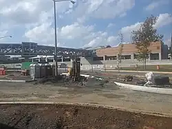 In April 2015, project officials pushed back the opening date for the station to late 2019, stating that stricter requirements for stormwater management caused much of the delay. Per officials, the line also had to incorporate improvements to the system's automated train controls that were a late addition to the project's first phase.[12] In August 2019, project officials reported that they expected construction on the second phase of the Silver Line to be completed by mid-2020.[13] The opening date was postponed to early 2021,[14] then to late 2021.[15] In February 2021, Metro announced that it would need five months to test the Phase 2 extension.[16][17] The Metropolitan Washington Airports Authority (MWAA) then announced that the Phase 2 extension should be substantially complete by Labor Day 2021,[18] although MWAA subsequently missed this deadline.[19]