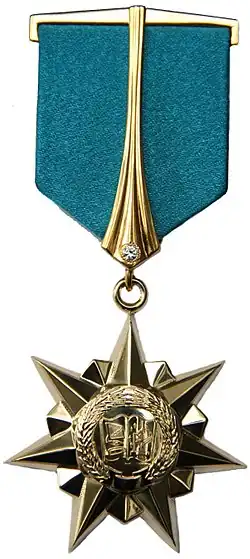 Hero of Labour of Kazakhstan (Kazakh: Қазақстанның Еңбек Ері, romanized: Qazaqstannyñ Eñbek Erı) is one of the highest titles of Kazakhstan, awarded for notable achievements in the economic and social development of the country. Recipients of the award are also awarded the Order of Otan. The award was established on 1 December 2008 and first awarded on 16 December 2008 after a presidential decree on 5 December. Not to be confused with the Order Labor Glory, it is the successor of the Soviet title Hero of Socialist Labour and the civil variant of the Hero of Kazakhstan award.[1]