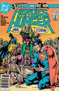 Heroes Against Hunger is a 1986 all-star benefit comic book for African famine relief and recovery. Published by DC Comics in the form of a "comic jam" or exquisite corpse, the book starred Superman and Batman.[1] Spearheaded by Jim Starlin and Bernie Wrightson, all proceeds from the comic went to hunger relief in Africa.
