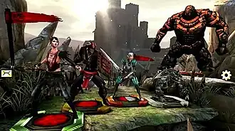 Scott Nichols from Digital Spy drew attention to the game's focus which was "squarely on collecting character figurines", and concluded that Heroes of Dragon Age will only really appeal to dedicated fans of the series.[9] He observed that "collecting and leveling up your figurines can become quite addicting", but advised that series fans "should set their expectations accordingly before playing, because there is still a long wait until the next proper game in the series".[9] Leif Johnson from MacLife said Heroes is a "generally entertaining romp through Thedan lore", with its Campaigns full of extra information about the world's lore.[8] He praised the visuals and music for providing an authentic ambience, fast-paced battles where the game's "consume-and-combine mechanic" adds a depth of strategy. He criticized the lack of battle interaction and an overly limiting stamina bar.[8]