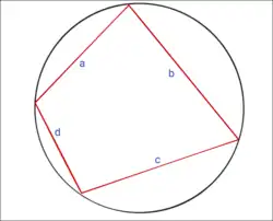 Brahmagupta's formula gives the area of a cyclic quadrilateral whose sides have lengths as