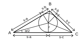If is the radius of the incircle of the triangle, then the triangle can be broken into three triangles of equal altitude and bases and Their combined area is where is the semiperimeter.