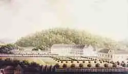 During exile from the family estates in Saxony, Zinzendorf began negotiating for Marienborn as a residence for what was called the Pilgrim Congregation. Before it was available, he brought his family to stay at the Ronneburg, a dilapidated castle in the area. Eventually the Zinzendorfs moved into Marienborn and construction of Herrnhaag began in 1738. The community was unfinished at the time of its abandonment in the early 1750s.