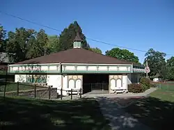 The Herschel-Spillman Two-Row Portable Menagerie Carousel, also known as the Story City Carousel, is a historic structure located in Story City, Iowa, United States. It was created by the Herschell Spillman Company of North Tonawanda, New York in 1913, and it has been owned and maintained by the Greater Community Congress of the City of Story City since 1938. Its "menagerie" of carved figures included horses, pigs, chickens and chariots. The Uncle Sam chariot, the pig and chicken pairs, and the lovers tub are all considered rare.[2] The carousel utilizes an under-animal scissor support system, which is an example of an earlier and simpler technology in the development of the merry-go-round. Its early history is unknown, but it was designed for temporary set-up and use.