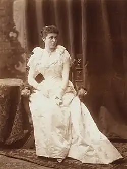 Her family had lived in County Kerry in Ireland since the 17th century, and her father was Deputy Lieutenant there.[2] She grew up at Burnham House, County Kerry (now an Irish-speaking girls' secondary school known as Coláiste Ide) as well as at Ennismore Gardens, Knightsbridge, London. Their neighbours in London were the 6th Earl of Hopetoun and his family. In 1873 the 6th Earl died and was succeeded by his son John Adrian Louis Hope as the 7th Earl. On 18 October 1886, at age 19, at All Saints' Church, Ennismore Gardens, she married the 7th Earl of Hopetoun.