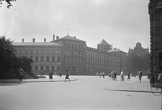 Herzog-Max-Burg was severely damaged by Allied bombs in April 1944, with only the tower—called Max-Turm[2]—surviving.[1][3][4] After the war, discussions between state and city building offices and historic preservationists resulted in the decision to tear down all remnants of the building except the surviving tower.[5]