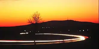 Hesselberg (pronounced [ˈhɛsl̩ˌbɛʁk] ⓘ; 689 m above sea level) is the highest point in Middle Franconia and the Franconian Jura and is situated 60 km south west of Nuremberg, Germany. The mountain stands isolated and far from the center of the Franconian Jura, in its southwestern border region, 4 km to the north west of Wassertrüdingen. The mountain's first recorded name was Öselberg, which probably derived from öder Berg (bleak mountain). This name later changed to Eselsberg and finally to the current name Hesselberg. As a butte the mountain provides an insight into Jurassic geology. It has also witnessed an eventful history, many incidents were handed down from generation to generation and these mixed with facts have become legends. Nowadays many people visit Hesselberg in order to enjoy nature and the wonderful vista. When the weather is clear the Alps 150 km away can be seen.