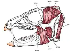 - ^ Nabavizadeh, A. (2018). "New reconstruction of cranial musculature in ornithischian dinosaurs: implications for feeding mechanisms and buccal anatomy". The Anatomical Record. 303 (2): 347–362. doi:10.1002/ar.23988. PMID 30332723. S2CID 52986589.