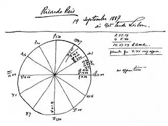 Pessoa, also an amateur astrologer, created in 1915 the heteronym Raphael Baldaya, a long bearded astrologer. He elaborated horoscopes of his main heteronyms in order to determine their personalities.