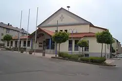 Municipal festival hall – The spacious Gemeindefesthalle came into being in the 1920s and was renovated about 2000. It was built by the gymnastic club Gut Heil using prestressed concrete.