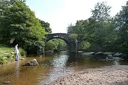 Very close to the village, on the opposite bank of the West Dart, is the hamlet of Huccaby, which has a parish church with an unusual dedication to St Raphael.[4]