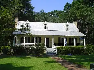 The Heyward House, is located in Bluffton, South Carolina. It was built in 1841 in the early Carolina Farmhouse style brought to North America by planters from the West Indies. The north parlor and the bedroom above, were the first parts of the house built by John J. Cole and his slaves in the early 1840s as a summer home for his wife Carolina Corley and their children. John J. Coles plantation was approximately 10 miles from downtown Bluffton. His father-in-law owned Moreland Plantation, located on present day Palmetto Bluff. By 1860, Cole had more than doubled the size of the house and his family, at which time the front and side windows in the front rooms were replaced with larger windows. The original parlor windows were reused in the dining room and back bedroom. The interior is clad with wide heart pine boards.