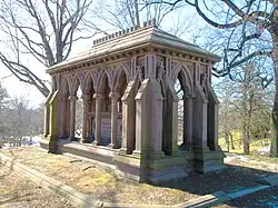 Pierrepont died in 1838 in Brooklyn.[1] Hezekiah and his wife Anna are memorialized in the Pierrepont Family Memorial, a Gothic Revival pavilion designed by Richard Upjohn.[13]