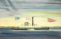 Wishing to subdivide and develop his property, Pierrepont realized the need for regularly scheduled ferry service across the East River, and to this end he became a prominent investor in Robert Fulton's New York and Brooklyn Steam Ferry Boat Company, using his influence on Fulton's behalf. He eventually became a part owner and a director of the company.[3] Fulton's ferry began running in 1814, and Brooklyn received a charter as a village from the New York state in 1816, thanks to the influence of Pierrepont and other prominent landowners.[5]