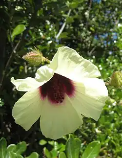 Hibiscus diversifolius, the swamp hibiscus, is a widespread species of hibiscus. It grows to between 1 and 2 metres in height, with prickly stems and yellow flowers with a maroon basal spot during spring summer.[1]