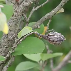 The fruit is commonly preyed upon by insects such as moth larvae, which bore into the fruit. Rehimena surusalis is a known predator of various hibiscus species, including H. hamabo.[9]
