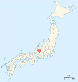 ![]() Map of Japanese provinces (1868) with Hida Province highlighted | |