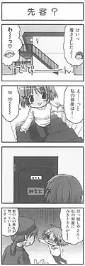 The original manga, written and illustrated by Ume Aoki, began serialization in the April 2004 issue of Houbunsha's monthly magazine Manga Time Kirara Carat released on February 28, 2004;[2] a total of 155 chapters have been published as of the December 2022 issue.[3] It is formatted in yonkoma (four-panel) style, with two comic strips per page and six to eight pages per chapter; the manga's story is presented in chronological order, unlike in its later anime adaptation. As of March 27, 2020, ten tankōbon volumes (containing 146 chapters) have been published in Japan under Houbunsha's Manga Time KR Comics imprint.[4] On December 8, 2007, Yen Press announced that it had licensed the series for an English-language release under the title Sunshine Sketch; the first translated paperback volume was released in North America on June 17, 2008.[5][6]
