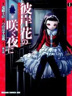 Higanbana no Saku Yoru ni began as a manga written by Ryukishi07 of 07th Expansion and illustrated by Ichirō Tsunohazu. The character designs were originally designed by Nishieda. The manga was serialized between the May 2010[1] and November 2012 issues of Fujimi Shobo's Monthly Dragon Age magazine. Six tankōbon volumes were released between November 9, 2010 and February 9, 2013.[4][5] A light novel written by Ryukishi07 with illustrations by Tsuitachi Sakuya titled Higanbana no Saku Yoru ni was published by Fujimi Shobo on December 20, 2011.[6]