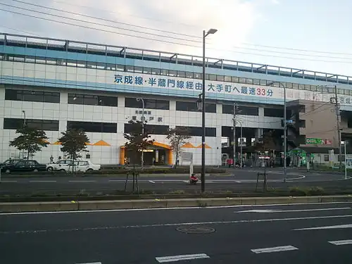 In fiscal 2019, the JR East station was used by an average of 20,839 passengers daily (boarding passengers only).[3] The Keisei portion of the station was used by 4,537 daily in FY 2019,[4] and the Hokuso Railway portion of the station was used by 19,082 passengers in FY2018.[5]