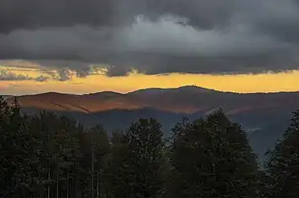 In its 1955 edition, the Handbook of Natural Region Divisions of Germany divides the Black Forest into six major units, the southwesternmost being designated as No. 155 Hochschwarzwald with an area of 1271.2 km². In addition to the southern centre of uplifted terrain of the Black Forest that peaks in the Feldberg it also includes the deeply incised valleys that radiate away to the south and west as well as the Weitenau Foothills (Weitenauer Vorberge).[2]