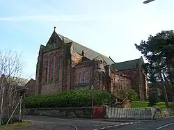 The Burnside church was established in 1928 and initially operated out of temporary buildings.[34][35] Plans for a permanent structure were postponed by World War II, but by the time the conflict ended, a merger had taken place between two congregations based within a few blocks of one another in the Pollokshields area of Glasgow, who chose to use the Sherbrooke Church going forward, leaving the St Gilbert's Church buildings (completed in 1911) unoccupied. They were dismantled brick-by-brick and transported to a new home at Burnside, 5 miles (8.0 km) away, the process completed in 1954.[36][8]