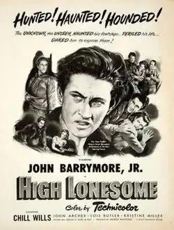 High Lonesome is a 1950 American Technicolor Western film written and directed by Alan Le May,[1] who also wrote the classic Western novels The Searchers, The Unforgiven, and numerous screenplays. High Lonesome was Le May's only directorial credit. The picture stars John Drew Barrymore (billed as "John Barrymore, Jr.") and features Chill Wills and Jack Elam. It is set in the Big Bend country of West Texas.