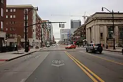 The street has a relatively broad width; it was originally laid out to be 100 ft (30 m) wide. Only Broad Street was wider, at 120 feet, while most others were 82.5 feet, and alleys were 33 feet wide.[4]